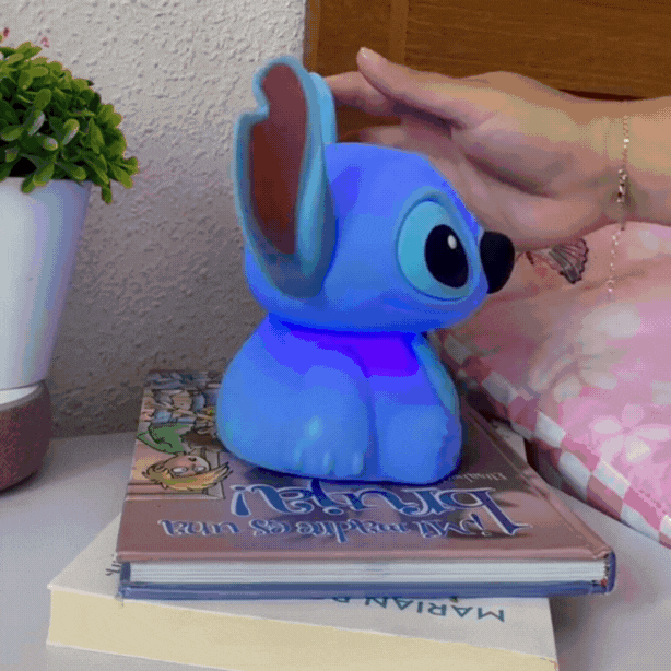 Transforme o quarto em um ambiente acolhedor, divertido e cheio de charme com a Luminária Stitch Night Light Feita em silicone macio, resistente e totalmente segura, ela é perfeita para crianças, fãs do personagem e para quem ama uma decoração fofa e iluminada.