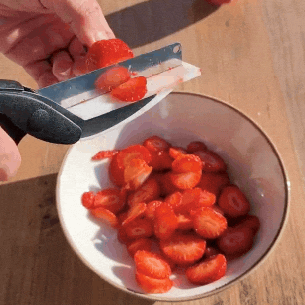 Essa tesoura 2 em 1 é a definição de praticidade na cozinha. Ela une tesoura + faca em um único utensílio, facilitando cortes, fatiamentos e descascamentos de forma rápida e segura. Perfeita para quem quer agilidade no preparo dos alimentos sem encher a gaveta de utensílios.